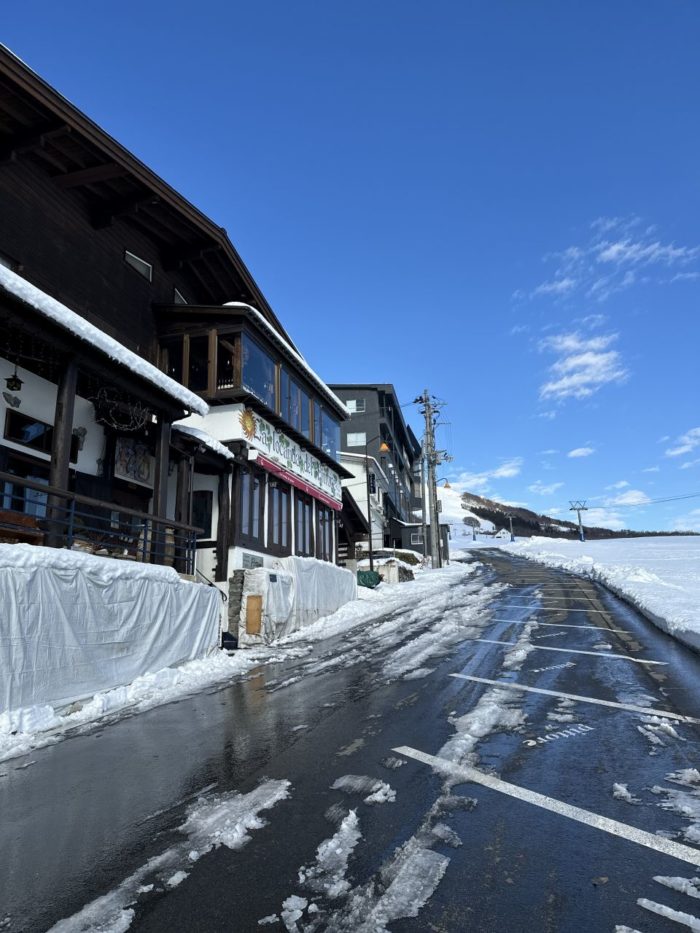 お店の前は、除雪はしてありますが、お車でのご来店は、坂道ですのでスリップして大変危険です。